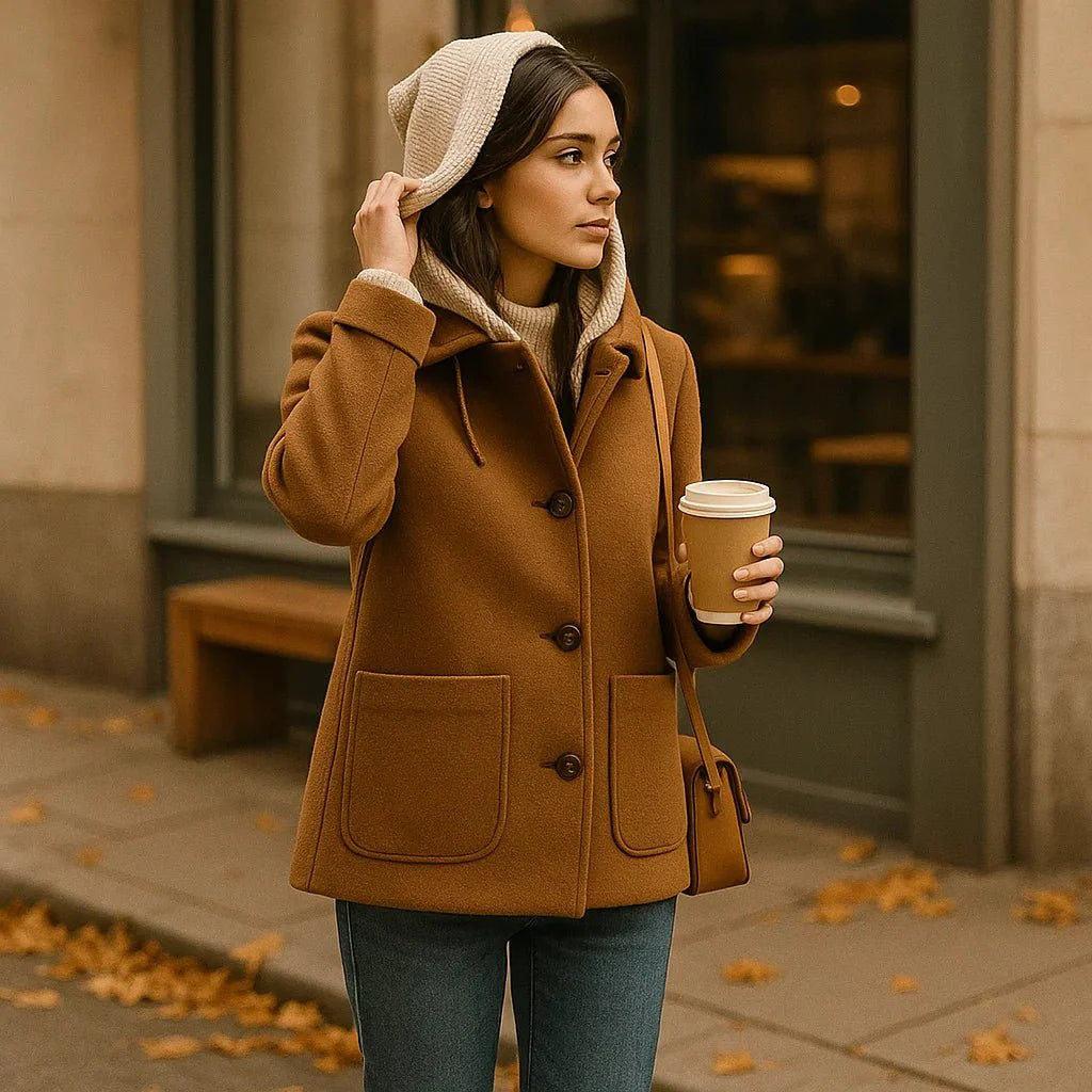 Dames Stijlvolle Jas met Opgevouwen Kraag