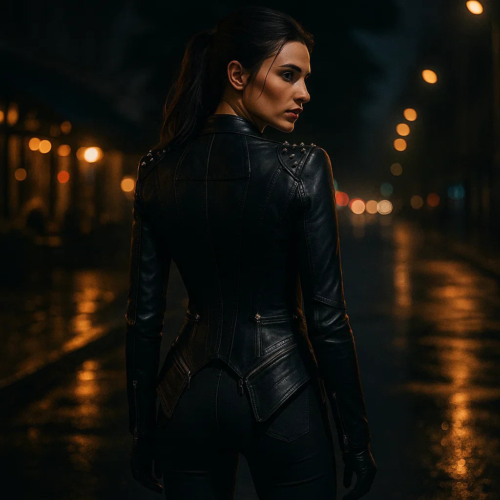 Deze gotische leren jas is de belichaming van een sterke, uitgesproken stijl. Metalen ritsen en gespen voegen karakter toe, terwijl de getailleerde snit de figuur accentueert - perfect voor avondjes uit en dagelijkse outfits met een randje.